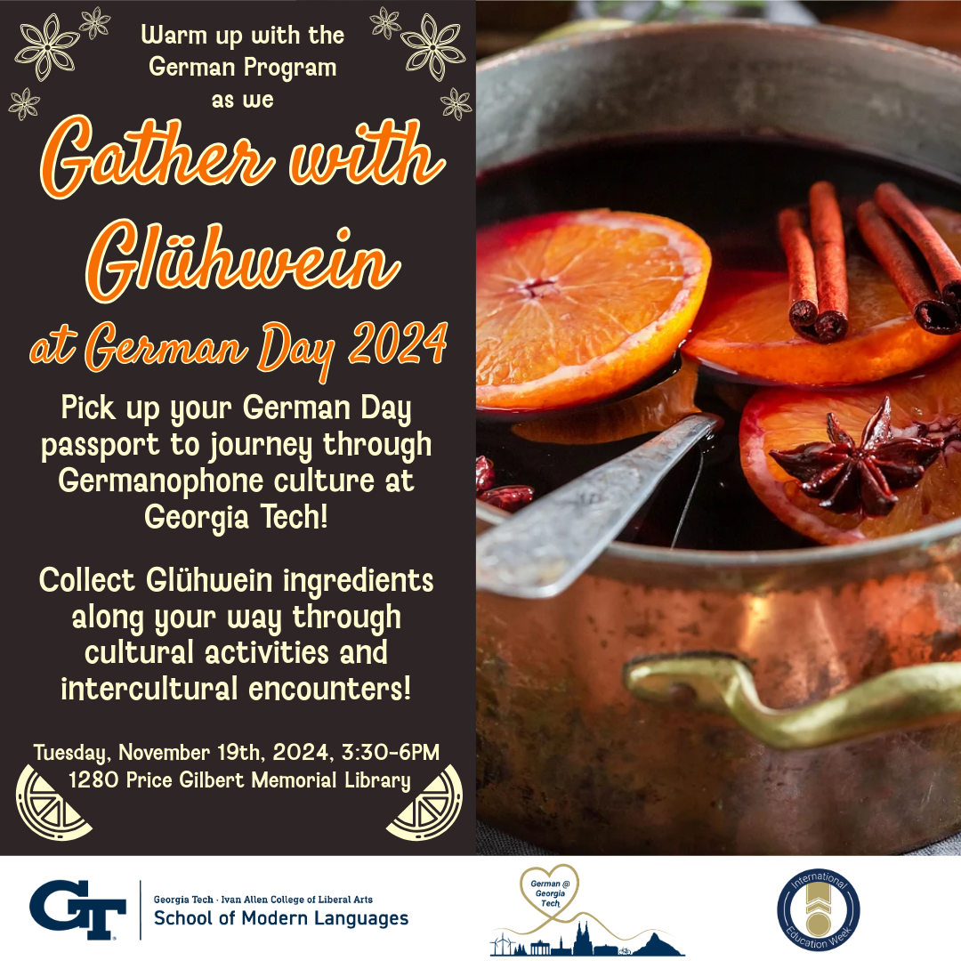 Warm up with us as we welcome you into German culture with Glühwein! Begin your international tasting tour with your own German Day 2024 passport and discover German traditions, have fun with our interactive trivia quiz, and gather with friends and the GT German-speaking community to collect non-alcoholic Glühwein ingredients!