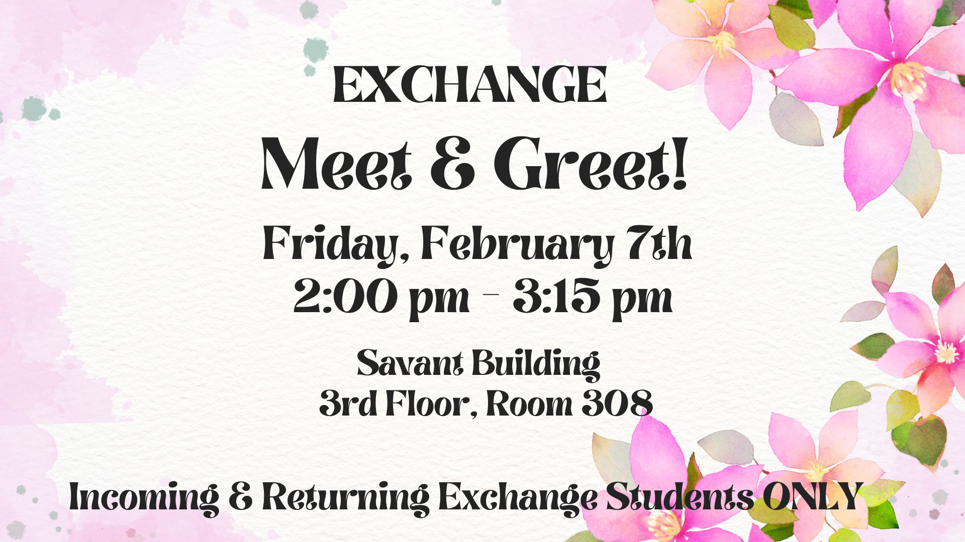 Please Note: Incoming and Returning Exchange Students ONLY